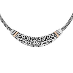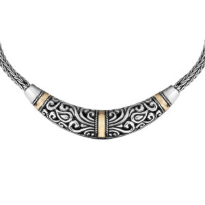 Taking silver from Kalimantan, our artisan handcrafts each link in three distinctive chains, intertwining them before uniting them with a traditional Balinese clasp. A classic statement piece, this necklace will become a modern heirloom to be passed down from generation to generation.