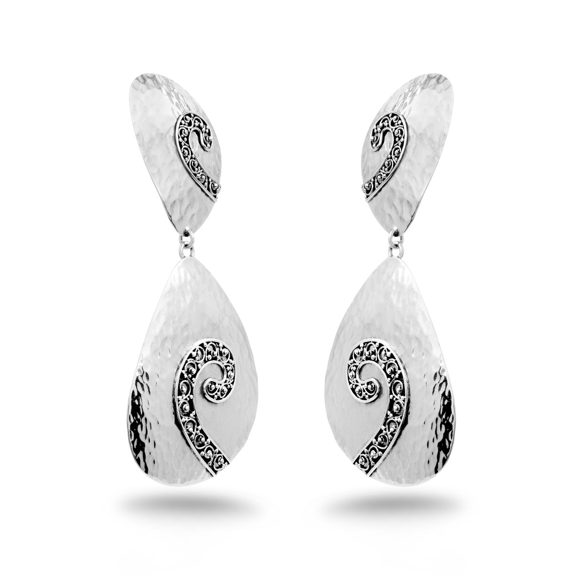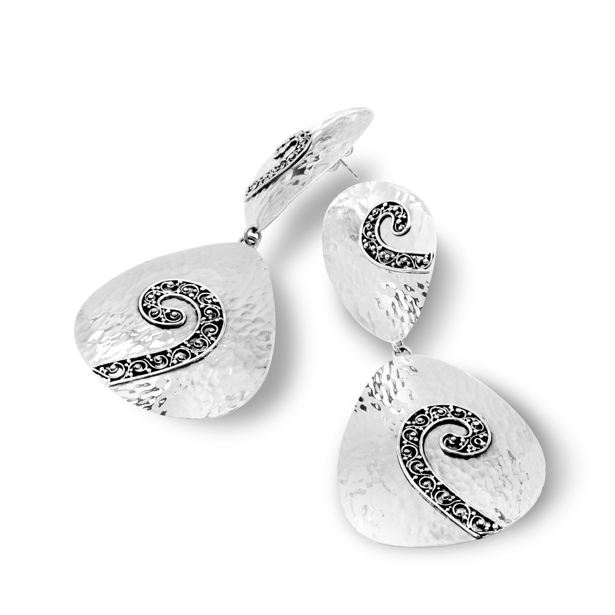 Introducing our exquisite Twin Teardrop Earrings from the enchanting Hammered Collection. Carefully forged from lustrous Sterling silver, each earring showcases a meticulously handcrafted hammer finish, adding a touch of timeless elegance to any ensemble.