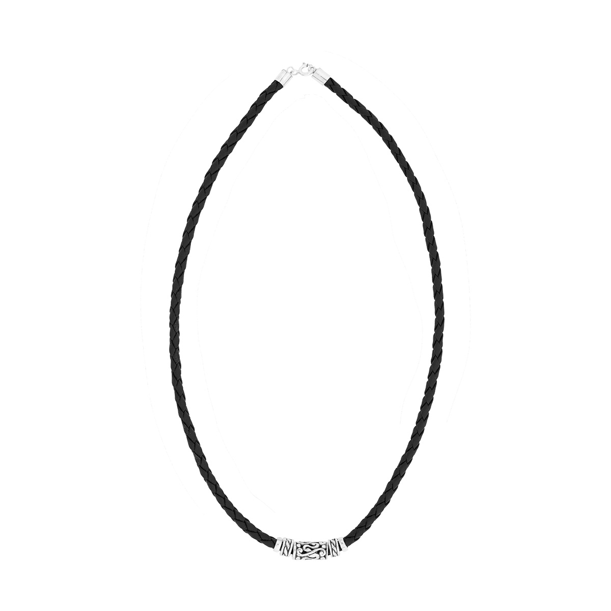 Wrapped around the strong braided leather strap is a beautifully intricate and carefully crafted silver piece. Four small silver rings keep the centre piece together, which features detailed wavy curves, symbolising the soft curves of Bali’s mountains and waterfalls.